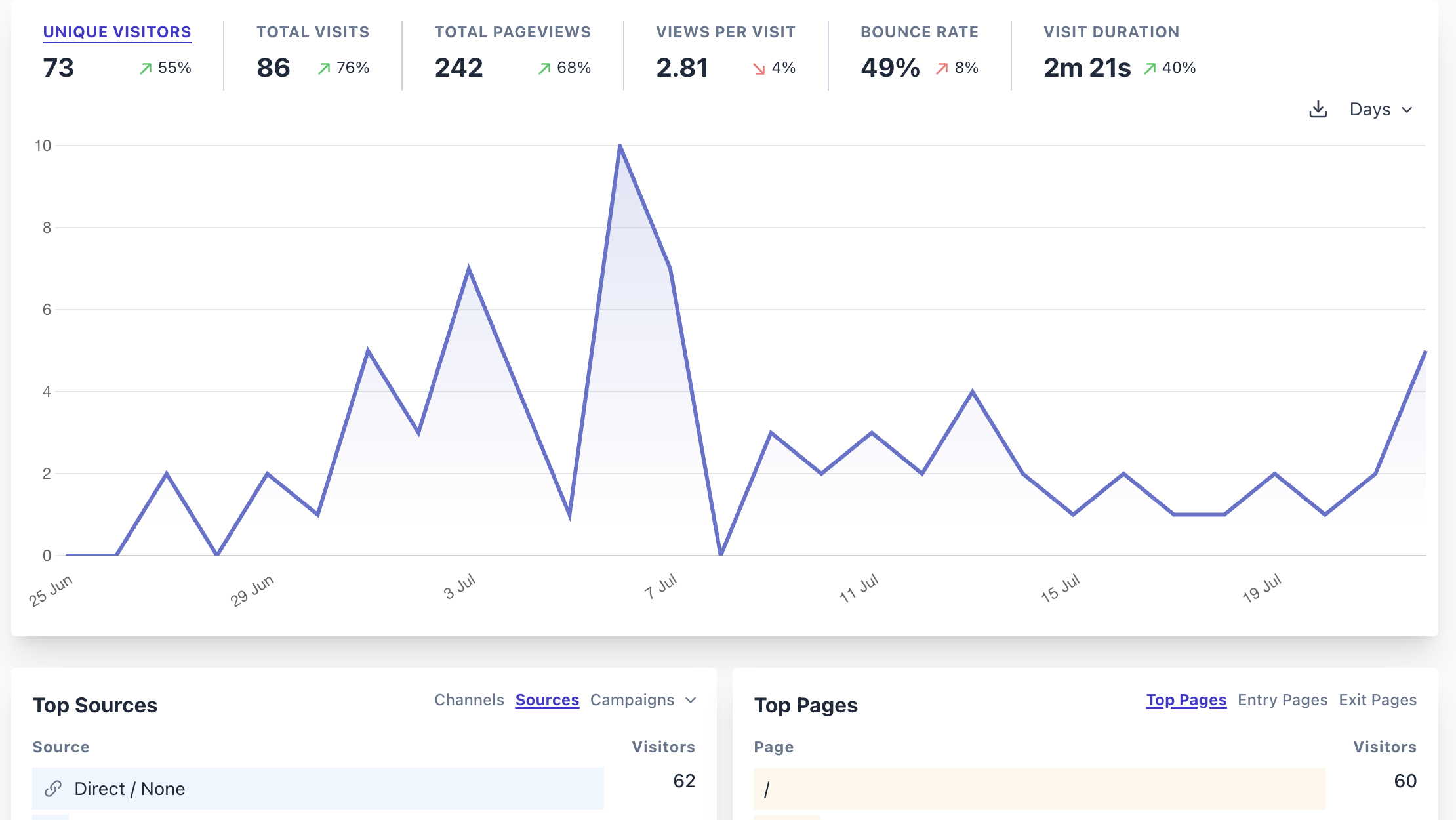 Når du åbner Plausible, får du ét overskueligt skærmbillede: